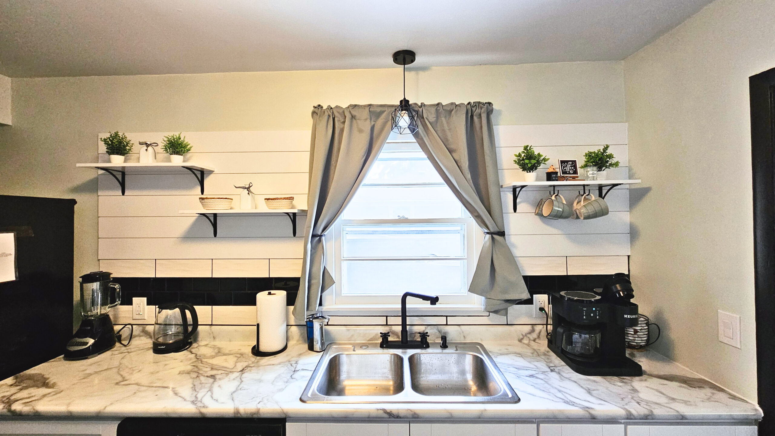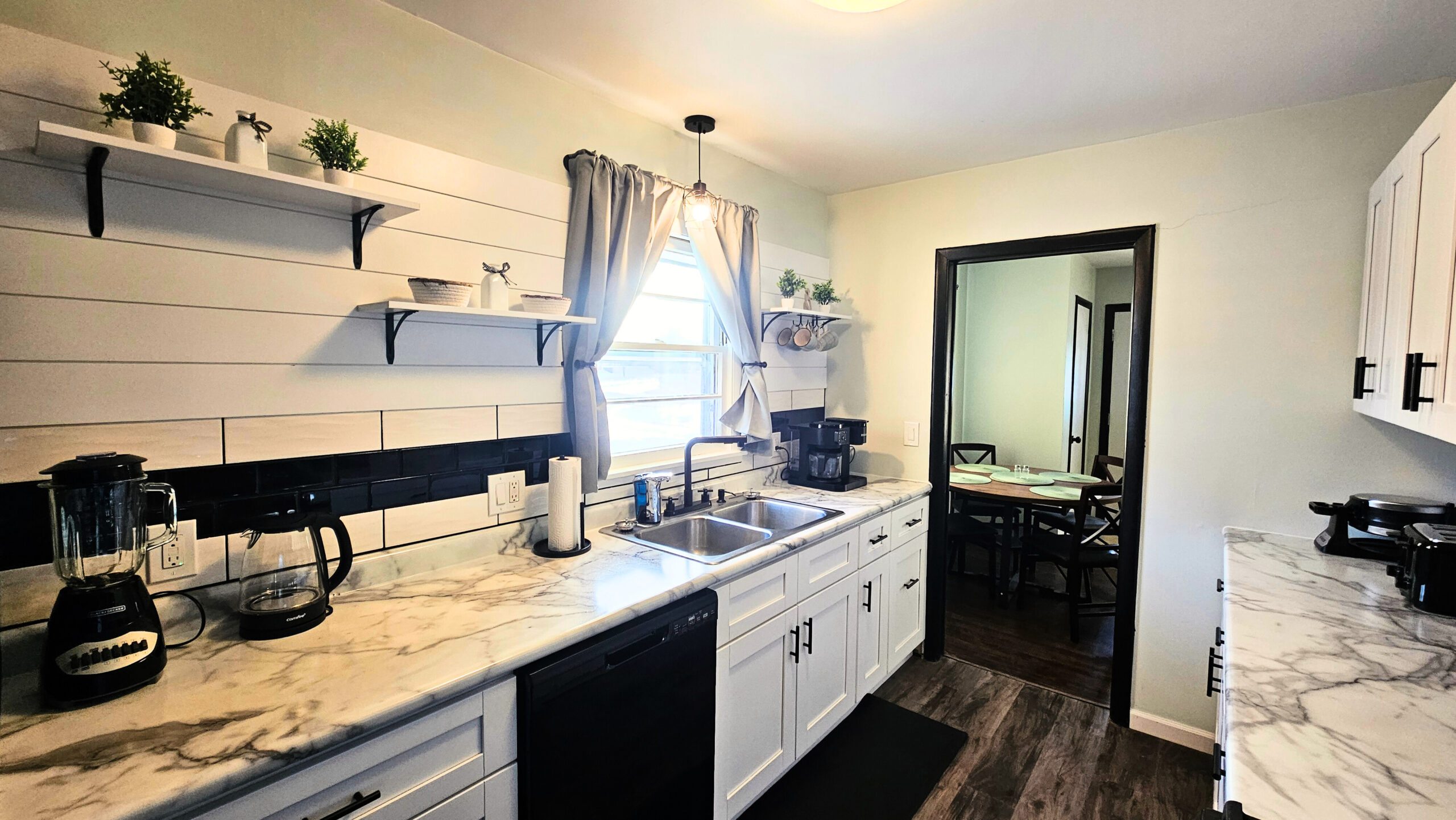 • A well-equipped kitchen with everything from a Keurig to a waffle maker