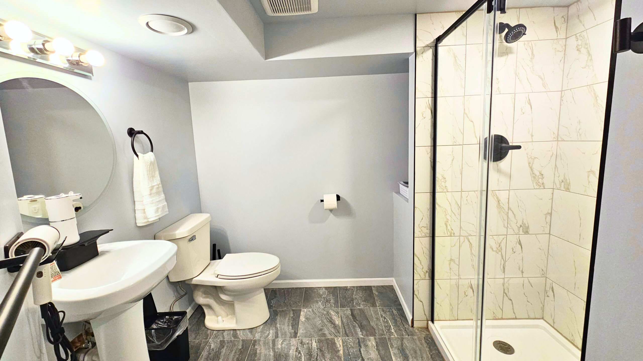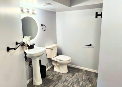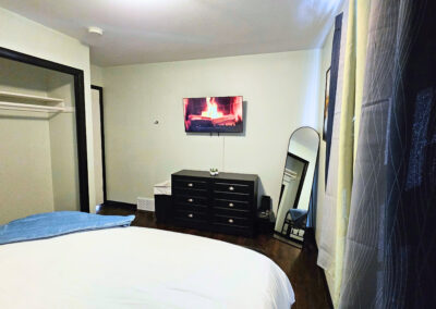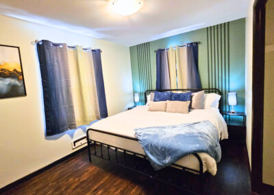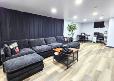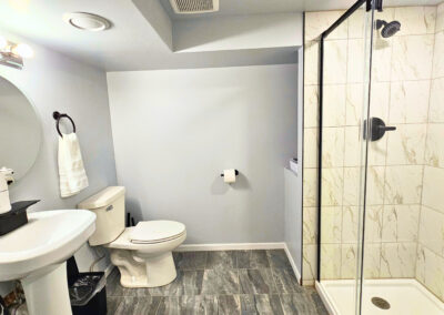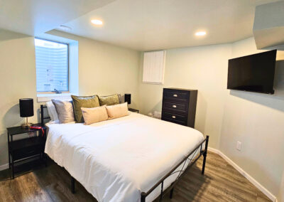 Downstairs is where the magic happens. Movie nights, game tournaments, and hours of laughter await in the entertainment room, featuring a classic arcade machine, poker table, foosball, and a huge 65” smart TV. There’s even a laundry area for long stays or little spills.  There is also another inviting bedroom and a second bathroom with a walk-in shower to make it easy for everyone to feel at home.